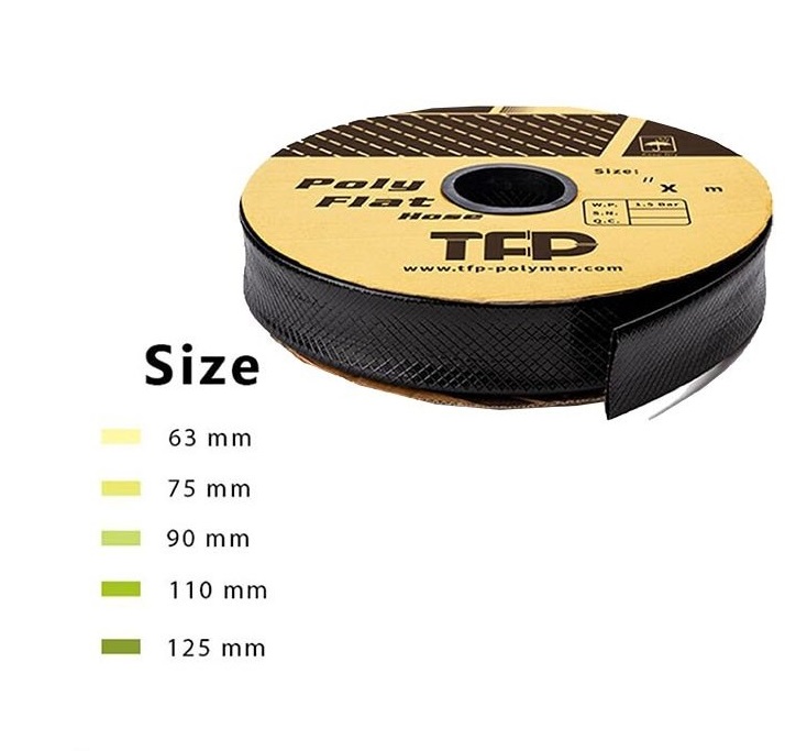 لوله نخدار TFP (پلی فلت TFP) لوله های تاشو و منعطف بوده که امروزه جایگزین لوله های پلی اتیلن تک جداره شده است. امروزه استفاده از این لوله ها به دلیل قیمت مناسب، وزن مناسب و انعطاف بالا جهت کاربرد های انتقال آب و آبیاری با استقبال بهره بردارن و کشاورزان روبرو شده است. لوله نخدار TFP از دو لایه پلی اتیلن با کیفیت مطلوب و یک لایه بافت نخی از جنس پلی استر تشکیل شده است که نخ درون لوله باعث افزایش استحكام براي تحمل فشار آب بوده و باعث آببندي بهتر اتصالات گرديده است. همچنین به دلیل بافت تار و پودی و لوزی شکل بکار رفته در این لوله ها استحکام بالایی در برابر فشارهای خارجی و ضربات دارد. پلی فلت TFP یا لوله نخدار TFP در سایز های 2 تا 6.5 اینچ تولید و به بازار عرضه شده است. فشار قابل تحمل این لوله ها 4 بار و فشار کارکرد آن 1.5 بار می باشد که این فشار کارکرد این لوله ها را برای انتقال آب به جای کانال های خاکی و سیمانی و همچنین برای آبیاری قطره ای تیپ مناسب کرده است.